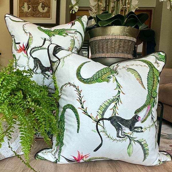 The African-themed fabric is a work of art celebrating culture, history & African Design. 60cm x 60cm scatter cover with plain upholstery backing and zip.