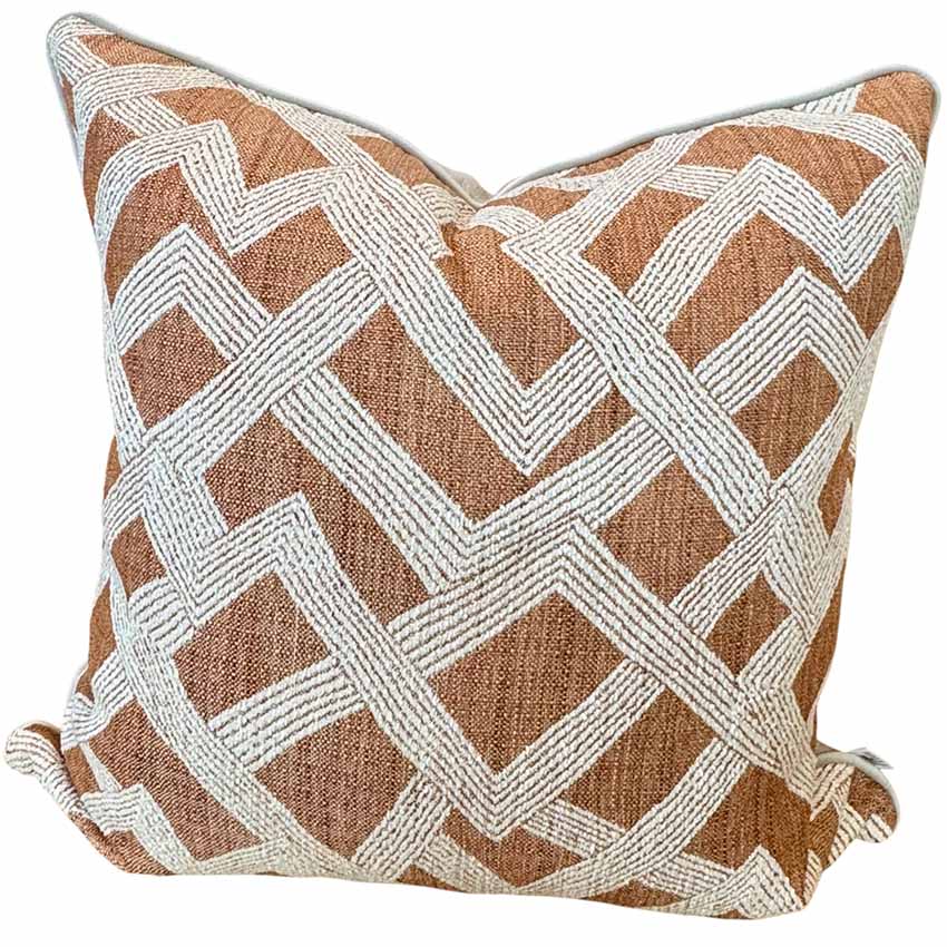 A heavy textured upholstery fabric was used to create this MoJo scatter cover. finished with cream colour piping and an enclosed zip. 60cm x 60cm