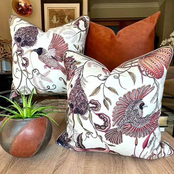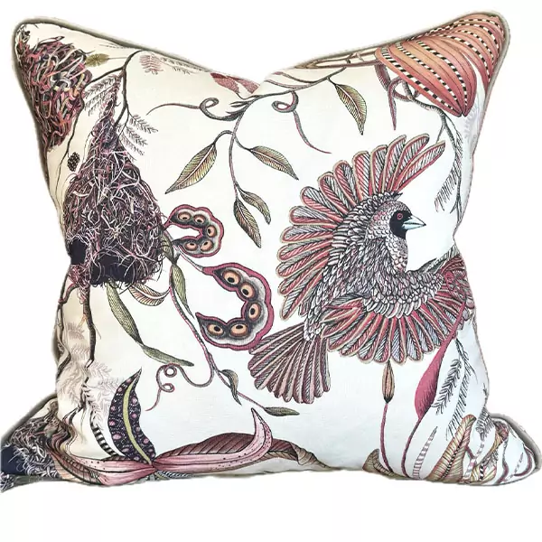 Finch Migration cover – Ardmore fabric design – 60cm x 60cm