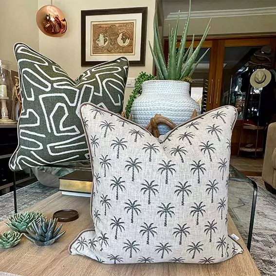 A modern geometric design with upholstery fabric in a 60cm x 60cm cover.