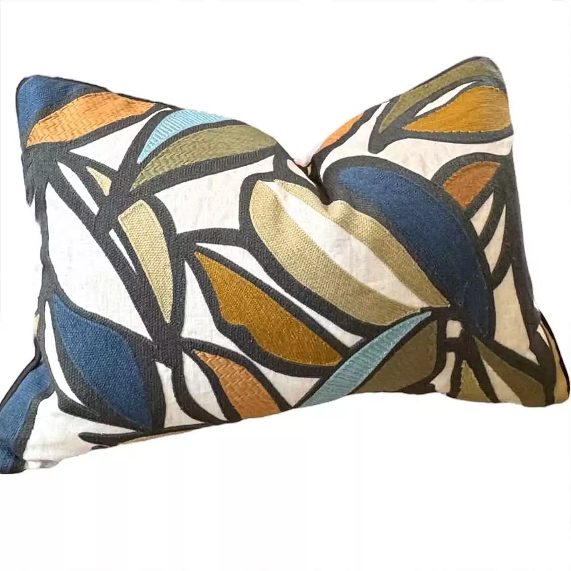 This embroidered design is timeless, luxurious, and modern, commanding attention with effortless elegance. with a piping finish and enclosed zip. 60cm x 40cm