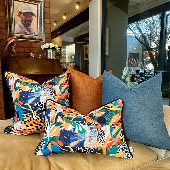 Made from Polyester fabric design with inspiring colours for a focus point. Washable and stain resistant. 60cm x 40cm cover with piping an enclosed zip.
